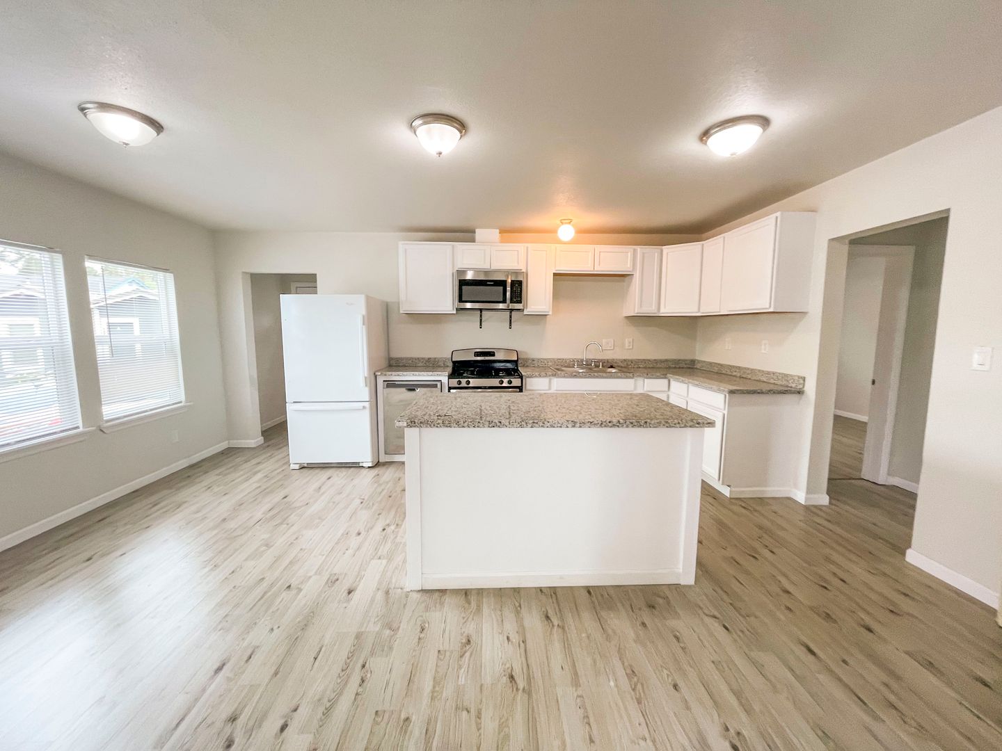 Pet friendly spacious home includes vinyl plank and ceramic tile flooring, granite countertops. Enjoy the ease of in-unit washer/dryer hookups in a spacious laundry room, off-street parking. Perfect for you and your pets!