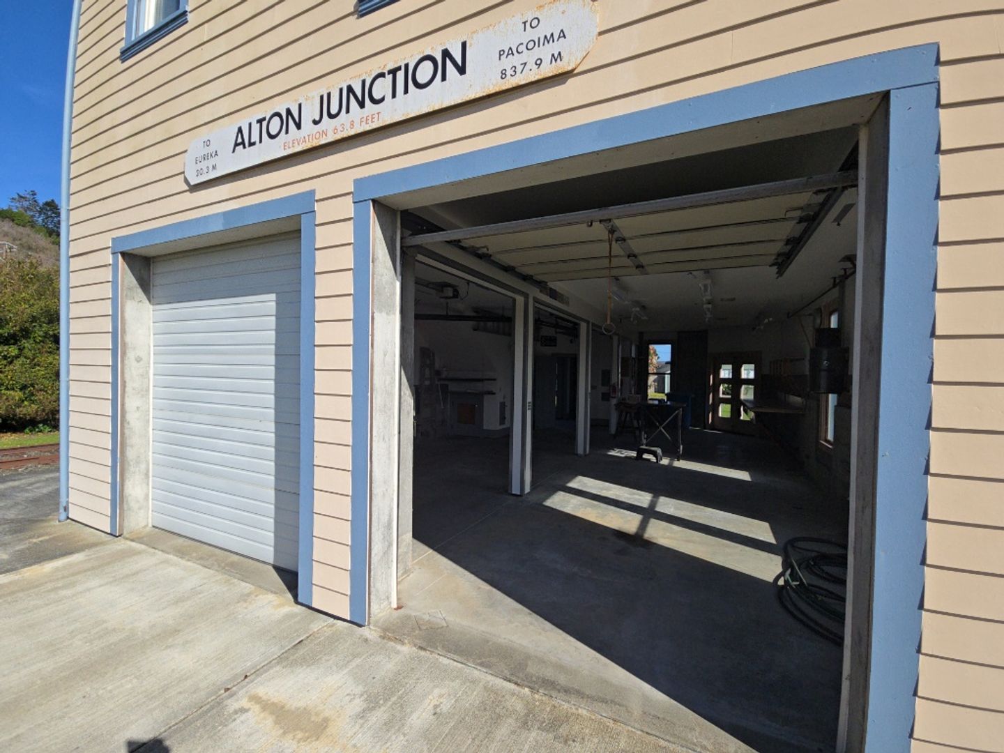 Unique to the rental market! This custom-built model train station home situated on a sun-soaked plane in Alton provides an ascetically distinctive living opportunity! This 2BD/1BA 2-story home features an over-sized ground-floor garage complete with work benches, ample space, and dual bay doors -- perfect for a craftsman looking for a quiet retreat to work in. Upstairs boasts beautiful wood flooring throughout, high ceilings, custom kitchen countertops, a walk-in master bedroom closet, and abundant natural light! Constructed as an homage to the former Alton train depot, this home -- situated between old railroads -- has no comparison on the rental market!